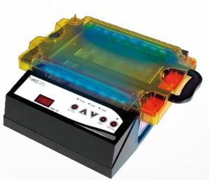 Major Science的SafeBlue蓝光电泳系统囊括了电泳电源、电泳槽、蓝光LED灯以及琥珀滤片,能满足完整的一套电泳实验流程要求,是市面上功能极强的系统设备。蓝光电泳系统采用无害的蓝光LED灯,能让使用者在跑胶的同时立即实时观测DNA/RNA链的变化。完整的产品还另搭配了3种不同尺寸的制胶盘:15 × 7 cm、15 × 10 cm、15 × 15 cm;此外,我们也提供不同配备来匹配客户的预算及需求。此系统通过RoHS及CE环保